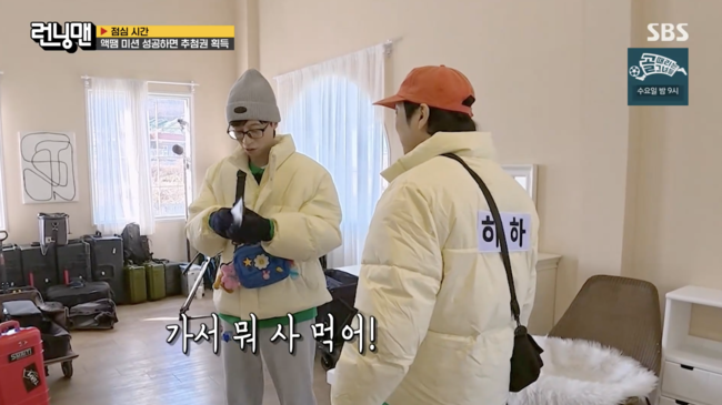 점심시간이 돼 식사 겸 미션을 진행하면 되는 멤버들은 각자 빠르게 움직였다. 유재석은 ‘호작도를 그려 AI에 인정받기’ 미션을 위해 장소를 이동했고, 그림도구를 들고 녹화장 옆동으로 갔다. 이때 하하가 유재석을 따라왔고, 하하는 “뭘 찾는 거지?”라고 물었다. 이에 유재석은 지갑을 열고 “가서 뭐 사먹어. 만 원 가서 뭐 사먹으라고”라고 회유했다. 하하는 돈을 받는대신 서로 미션을 돕자고 했고, 연합을 하기로 약속했다.