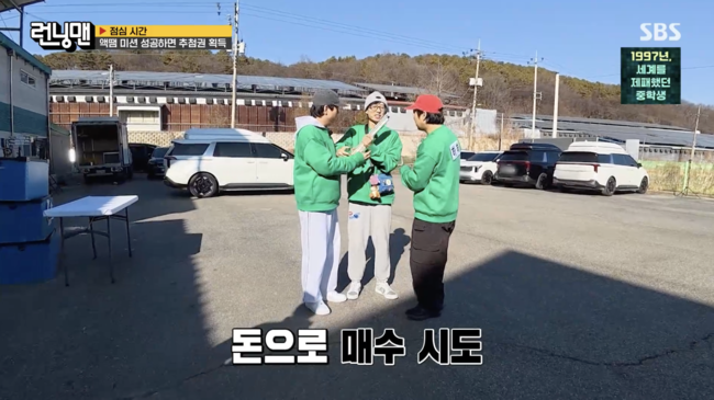 이날 유재석은 새해를 기념해 ‘런닝맨’ 제작진에 커피차를 선물했다. 지석진은 “네가 한 거야?”라고 물었고, 유재석은 “아니? SBS의 얼굴이 했어”라고 말했다.