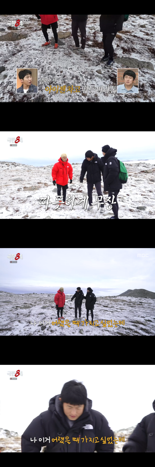 다음 날 레이스를 앞두고 코스를 미리 둘러본 극한 크루는 인근 빙하의 영향으로 살을 에는 추위와 마주한다. 멤버들은 신발에 아이젠을 장착한 채 몸을 풀며 생애 처음 경험하는 ‘아이젠 마라톤’을 예행연습한다. 긴장감이 감도는 가운데 기안84는 “아이젠을 차고 뛴다는 건 상상도 못 해봤다”며 솔직한 소감을 전했다.