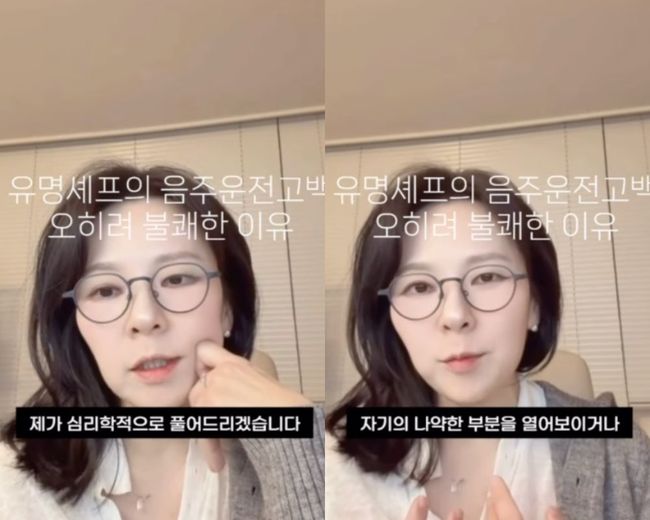 그는 “한 유명 셰프가 세 차례의 음주운전 전력을 직접 고백하며 큰 논란이 됐다”며 “이 장면이 왜 대중에게 더 불쾌하게 받아들여졌는지를 심리적으로 짚어보고 싶었다”고 밝혔다.