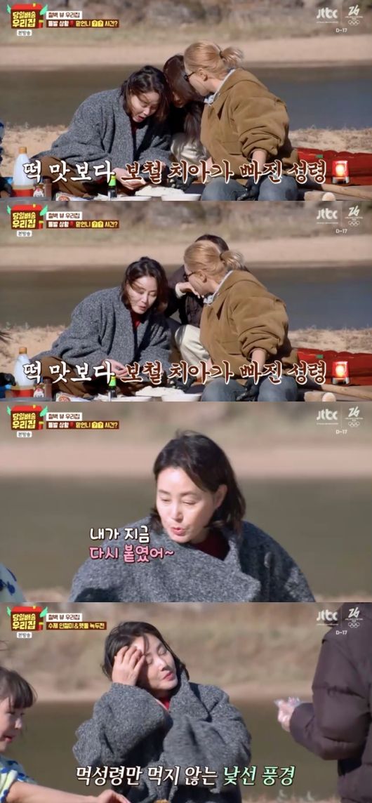 알고 보니 김성령의 치아에 있던 보철 치아였던 것. 김성령은 다급히 셀프로 고치며 미안하다고 사과했다. 다른 멤버들이 맛있게 음식을 먹는 모습을 바라보던 김성령은 “못 먹는다”라며 슬픈 표정을 지었다.