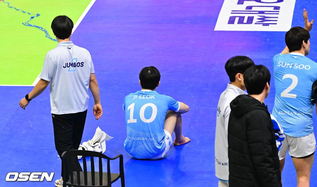 경기 종료 후 정지석은 쉽게 코트를 떠나지 못했다. 팀 동료들이 모두 빠져나간 뒤에도 한동안 코트에 주저앉아 있었다. 셧아웃 패배와 복귀전이라는 부담이 겹친 순간이었다. 이를 지켜본 한국전력의 하승우와 신영석이 다가와 정지석에게 위로의 말을 건네며 스포츠맨십을 보여줬다.