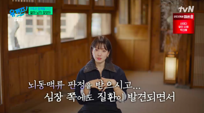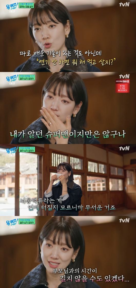 결국 박신혜는 “솔직히 뇌동맥류라는 게 언제 터질지 모르니까 무섭다. 그리고 요즘 저도 나이가 들어간다고 느낀 게 장례식장을 자주 갈 일이 생기다 보니까, 물론 아직 많이 남았지만 내가 생각한 만큼 길지는 않겠다. 그런 거에 있어서 가족의 소중함을 더 깨닫게 된다”라며 눈물을 흘렸다.