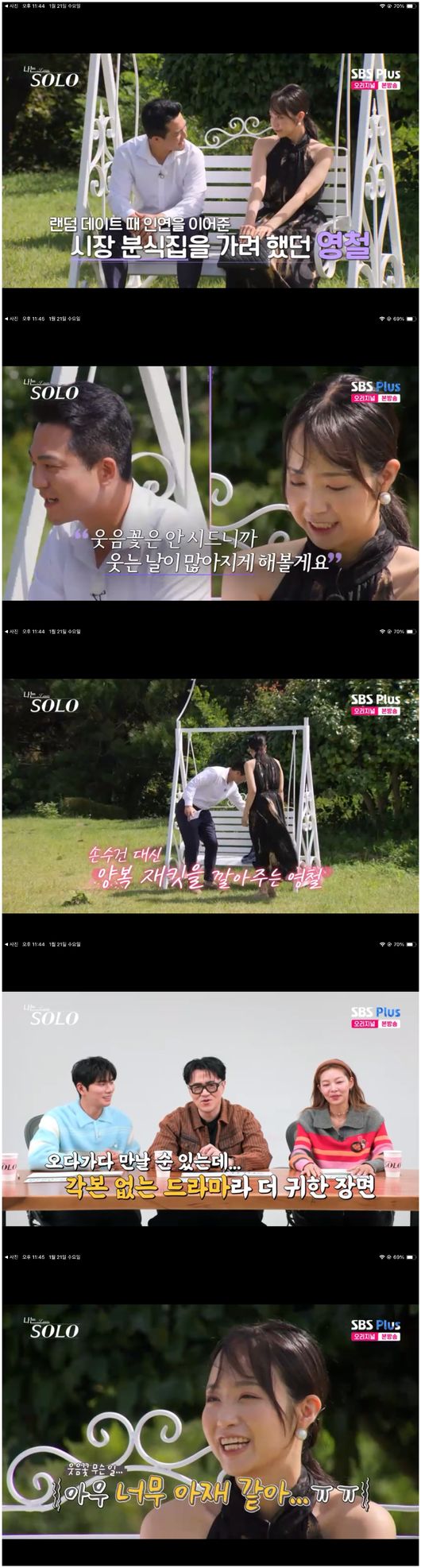 21일 방영된 SBS 예능 ‘나는 SOLO - 나는 솔로’(이하 ‘나는 솔로’)에서는 영숙에게 마음이 끌렸던 영철이 지난주부터 급격히 정숙에게 기우는 모습을 보였다. 그는 자신의 혼란을 정리하고자 마지막 밤 대하 데이트에 정숙을 골랐다.