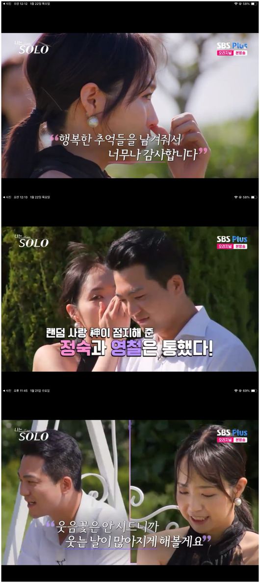 21일 방영된 SBS 예능 ‘나는 SOLO - 나는 솔로’(이하 ‘나는 솔로’)에서는 마지막날 데이트에서 정숙을 선택한 영철의 숨길 수 없는 마음이 드러났다. 그는 영숙에게 쏠렸던 마음을 공공연히 인정했고, 정숙에게도 자신의 마음을 이야기했다. 그러나 지난주 정숙과의 대화에서 막힘없는 정숙에 대한 생각을 보며 영철의 마음은 사뭇 달라졌다. 심지어 자신의 마음을 편견 없이 들어준 정숙의 태도에 호감이 생겼다.