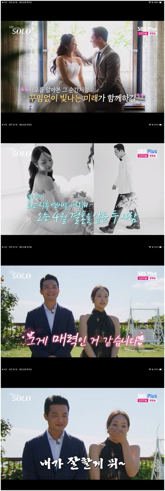 영철은 “제 인생에 제일 잘한 거 같다. 내가 잘할게”라며 정숙에게 고백했다. 이어 이들의 웨딩 사진과 함께 4월 결혼 소식이 알려졌다./osen_jin0310@osen.co.kr