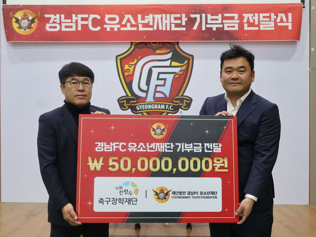 이날 전달된 기부금은 5,000만원으로, 경남FC 유소년 선수 육성과 선수단 지원, 경남 지역 축구 저변 확대를 위해 활용될 예정이다.