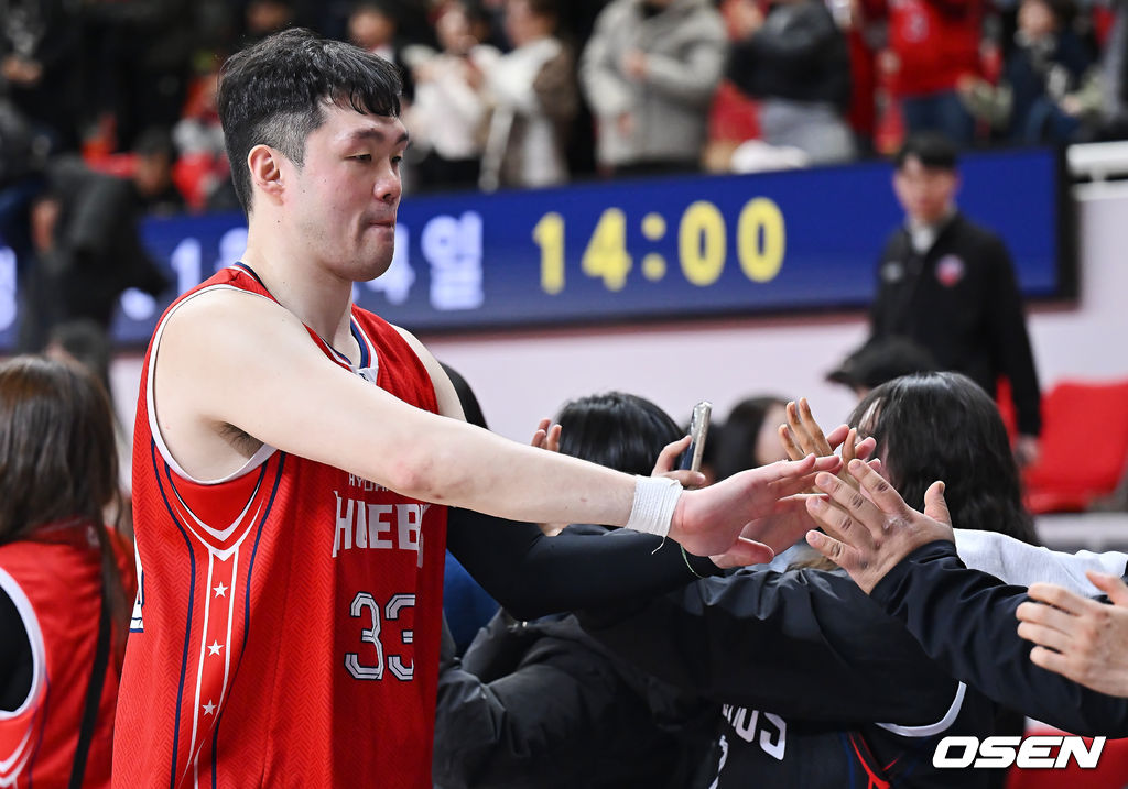 울산 현대모비스 이승현이 78-71로 승리한 후 팬들과 승리 기쁨을 나누고 있다. 2026.01.22 / foto0307@osen.co.kr
