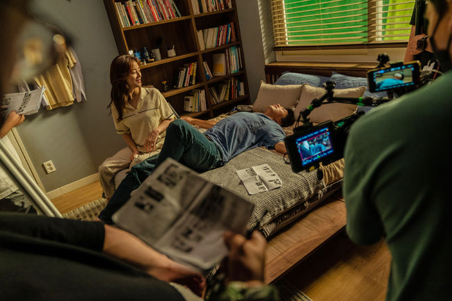 이번에 공개된 '하트맨' 비하인드 스틸은 카메라 앞에서는 물론, 카메라 밖에서도 이어진 배우들과 제작진의 유쾌한 에너지를 고스란히 담아내 눈길을 끈다. 먼저 권상우와 문채원은 촬영을 준비하는 중임에도 웃음을 참지 못하는 모습을 보여주고 있어, 작품 속 그들의 케미스트리가 어떻게 완성되었는지 엿보게 한다. 자연스럽게 이어지는 티키타카와 여유로운 표정에서는 오랜 호흡 끝에 완성된 두 배우의 신뢰가 고스란히 전해진다.