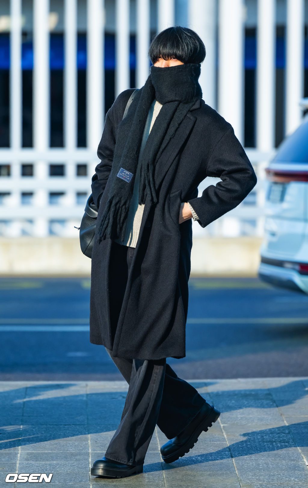 에이티즈 윤호가 출국 앞서 신호를 기다리고 있다. 2026.01.23 / soul1014@osen.co.kr