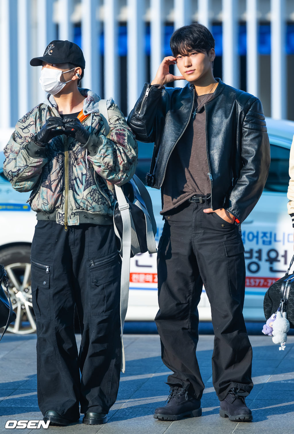 에이티즈 홍중과 산이 출국 앞서 신호를 기다리고 있다. 2026.01.23 / soul1014@osen.co.kr