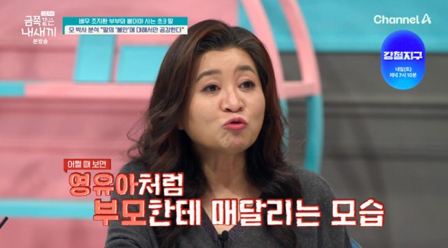 이어 “아이가 스스로 힘을 기르는 것에 대해 엄마가 냉정하게 말하면 방해한다. 나머지는 불안해하는 상황에서 ‘너 왜 그래?’ 하는 것도 있다. 얘 입장에서는 어느 순간에 냉정했다가 가끔은 눈물 흘리면서 공감하니까 헷갈릴 것 같다”고 꼬집었다.