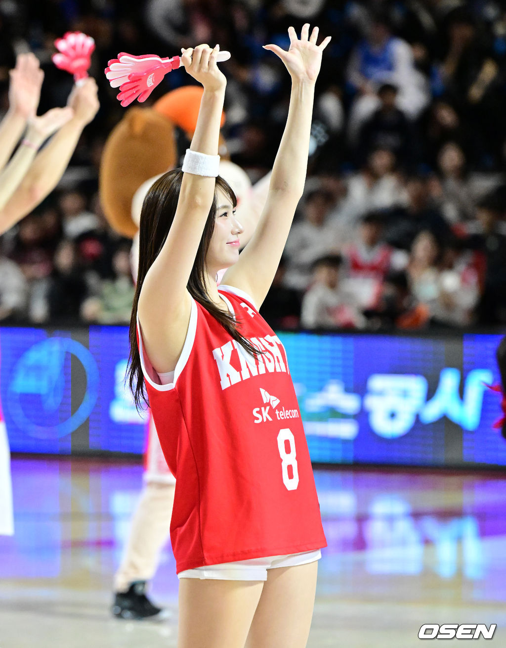 SK 정다혜 치어리더가 팬들과 응원을 하고 있다. 2026.01.24 /jpnews@osen.co.kr