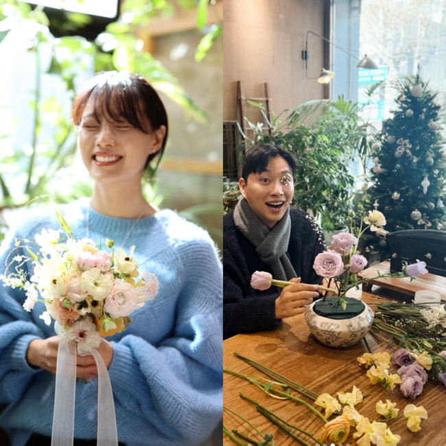 공개된 사진 속 송지은과 박위는 화원에서 데이트를 즐기며 환한 미소를 짓고 있다. 두 사람은 직접 만든 부케를 들고 사진을 찍는 등 소소하지만 다정한 신혼의 분위기를 전했다. 자연스럽게 닮은 웃음과 편안한 표정이 눈길을 끌었다.