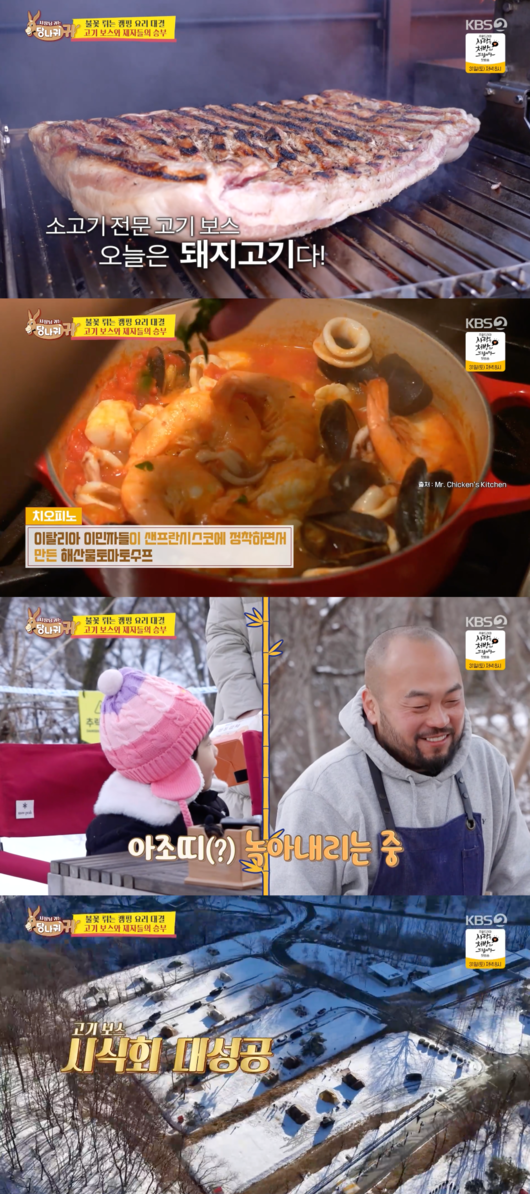 간단하게 대화를 마친 세 사람은 본격적인 요리에 들어갔다. 수프 요리 1개와 고기 요리 1개를 준비한 데이비드 리는 삼겹살을 이용해 그릴 요리를 시작했다. 이와 함께 아궁이에 치오피노라는 이탈리아식 해물탕을 준비한다고 밝힌 데이비드 리는 “이탈리아식 해물탕인데 이탈리아에는 저 요리가 없다. 첫 탄생지가 미국 샌프란시스코다”라고 설명하기도 했다.