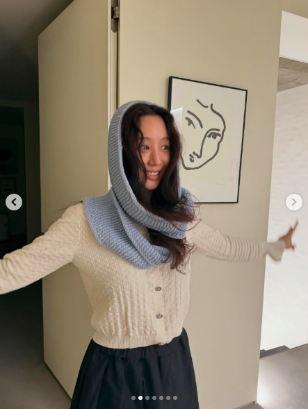 공개된 사진 속 정려원은 니트 가디건에 스커트를 매치한 내추럴한 차림으로 포즈를 취하고 있다. 스카프를 머리에 두른 채 팔을 벌리고 활짝 미소 지은 그는 민낯에도 눈부신 비주얼을 자랑했다.