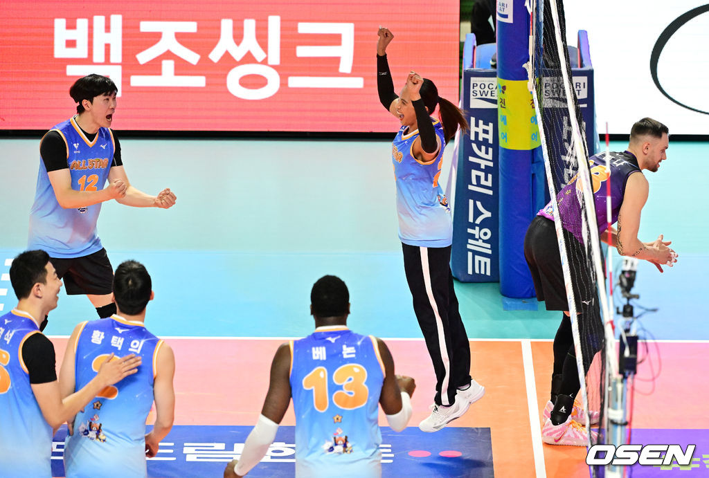한국도로공사 타나차가 남자부 경기에 투입돼 득점에 성공하며 기뻐하고 있다. 2026.01.25 /jpnews@osen.co.kr