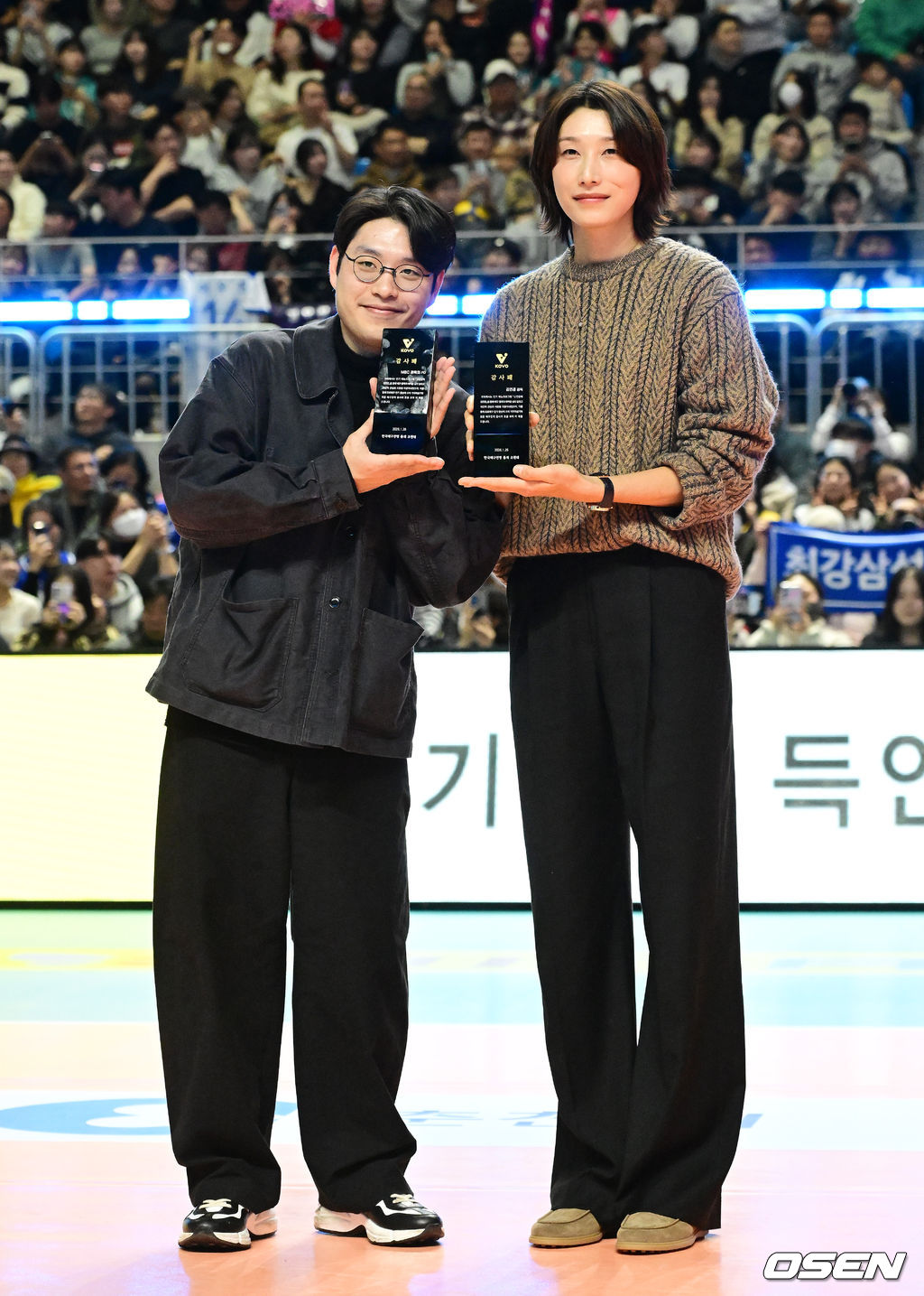 감사패를 받은 권락희 PD와 김연경이 포즈를 취하고 있다. 2026.01.25 /jpnews@osen.co.kr