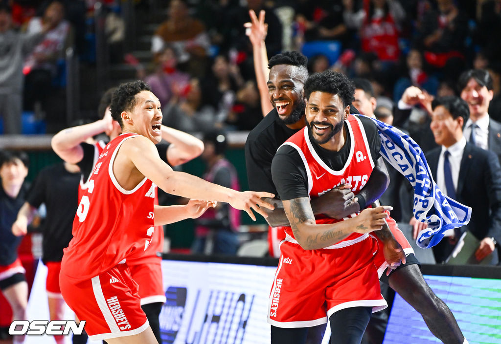 3쿼터 버저비터 3점슛을 성공시킨 서울 SK 대릴 먼로가 동료들과 기뻐하고 있다. 2026.02.11 / soul1014@osen.co.kr