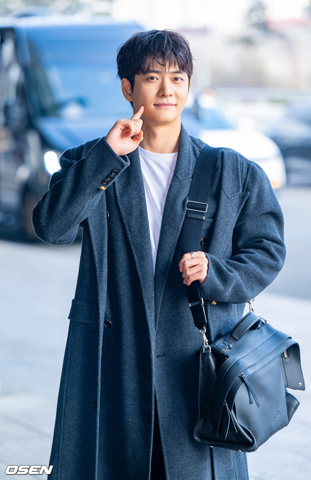 배우 강태오가 출국에 앞서 포즈를 취하고 있다. 2026.02.12 / soul1014@osen.co.kr