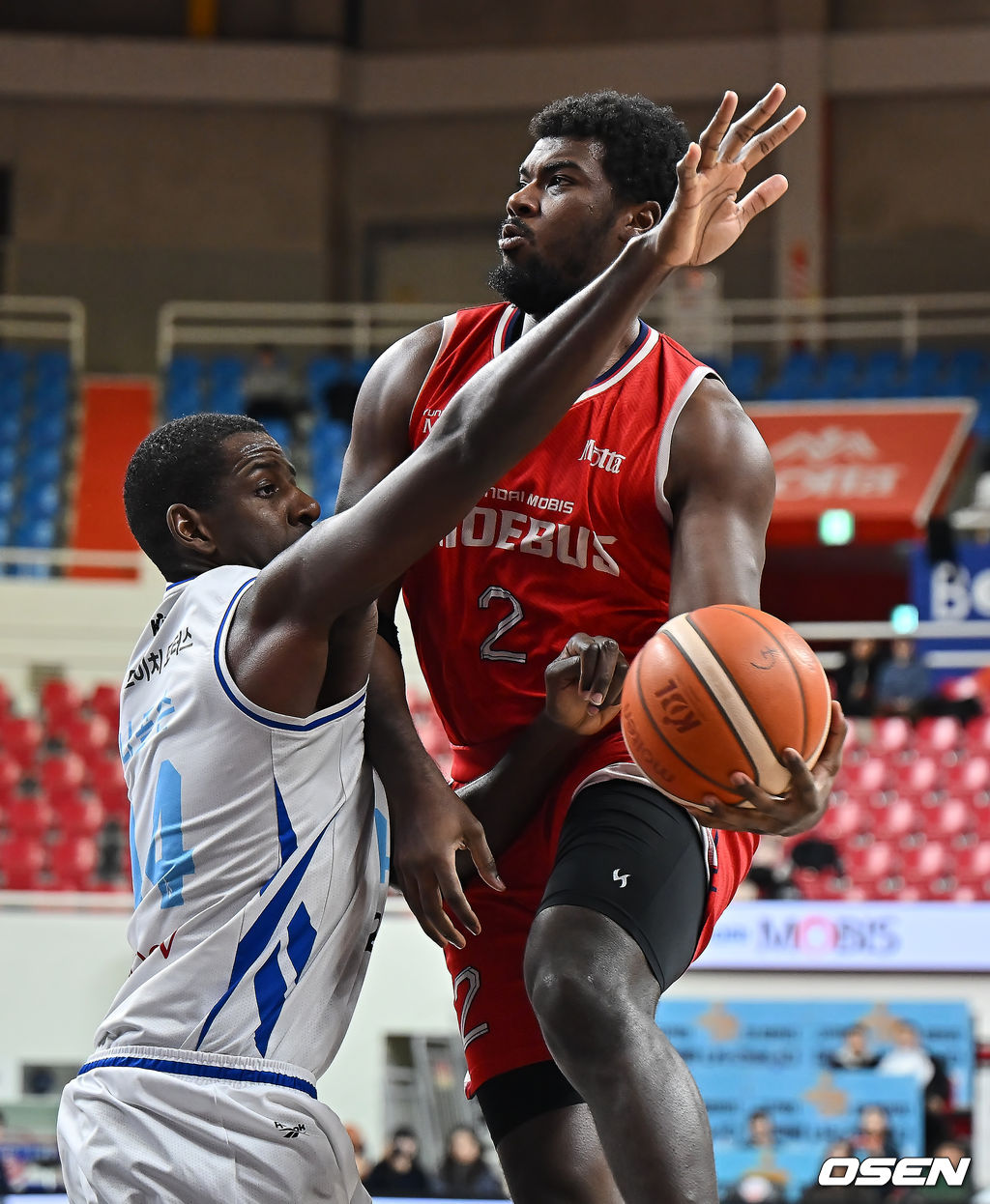 울산 현대모비스 레이션 해먼즈가 서울 삼성 앤드류 니콜슨의 마크를 피해 패스하고 있다. 2026.02.12 / foto0307@osen.co.kr