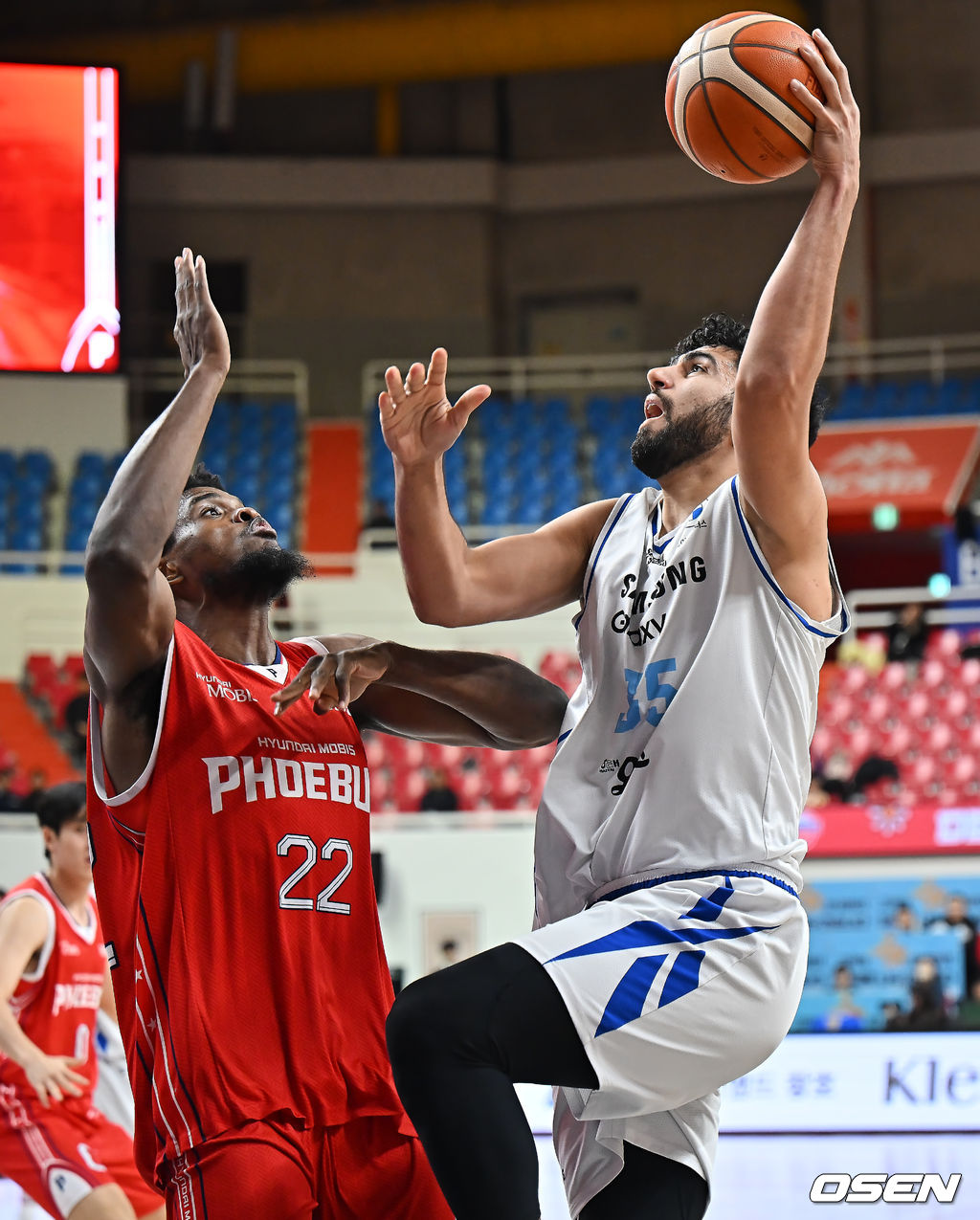 서울 삼성 케렘 칸터가 울산 현대모비스 존 이그부누의 마크를 피해 골밑슛을 시도하고 있다. 2026.02.12 / foto0307@osen.co.kr