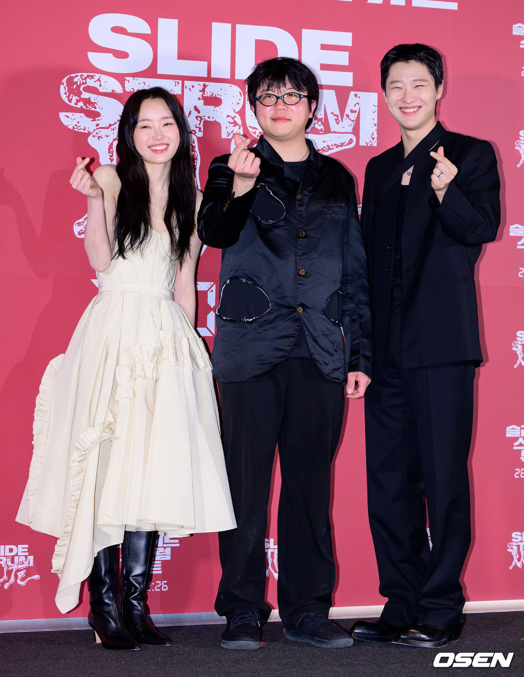 배우 정회린, 박세영 감독, 배우 우즈가 포토타임을 하고 있다. 2026.02.20 /jpnews@osen.co.kr