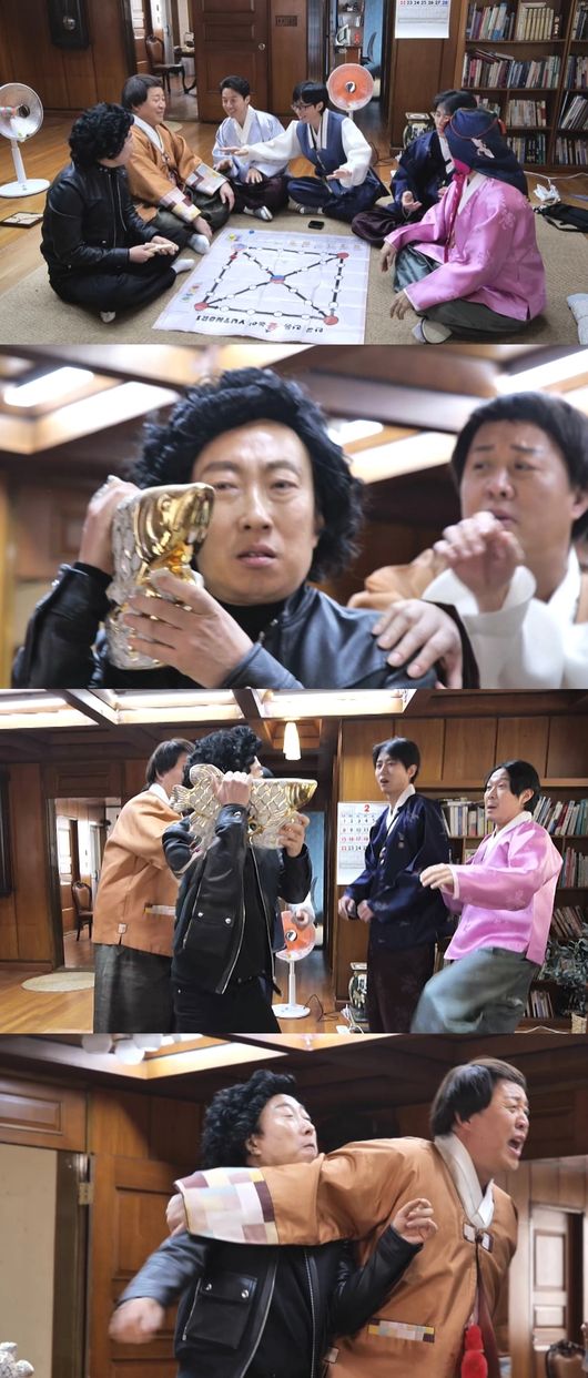 공개된 사진에서 회원들은 화목하게 윷놀이를 하면서 웃음꽃을 피우고 있다. 그러나 게임이 이어질수록 점점 언성이 높아지고, 급기야 자리를 박차고 일어나 서로 대치하는 일촉즉발 분위기가 형성된다.