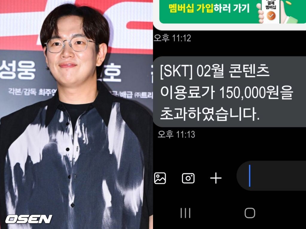 공개된 사진 속에는 콘텐츠 이용료가 15만 원을 초과했다고 알리는 통신사의 메시지가 담겨 있어 눈길을 끈다.