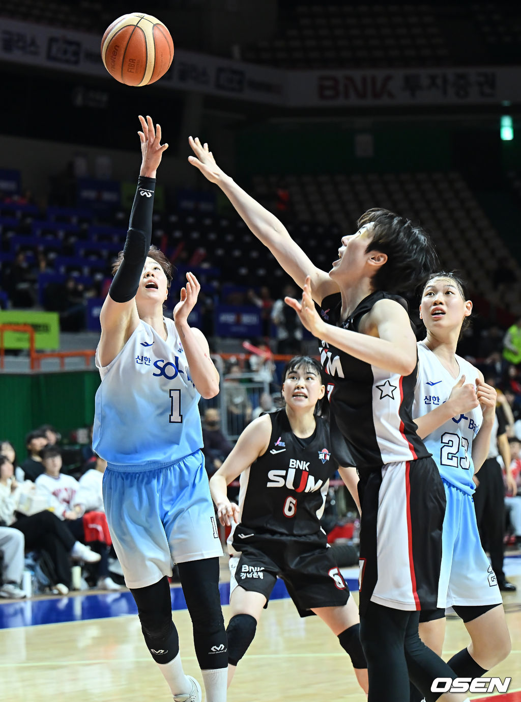 22일 부산 사직실내체육관에서 BNK금융 2025~2026 여자프로농구 부산 BNK와 인천 신한은행의 경기가 열렸다.