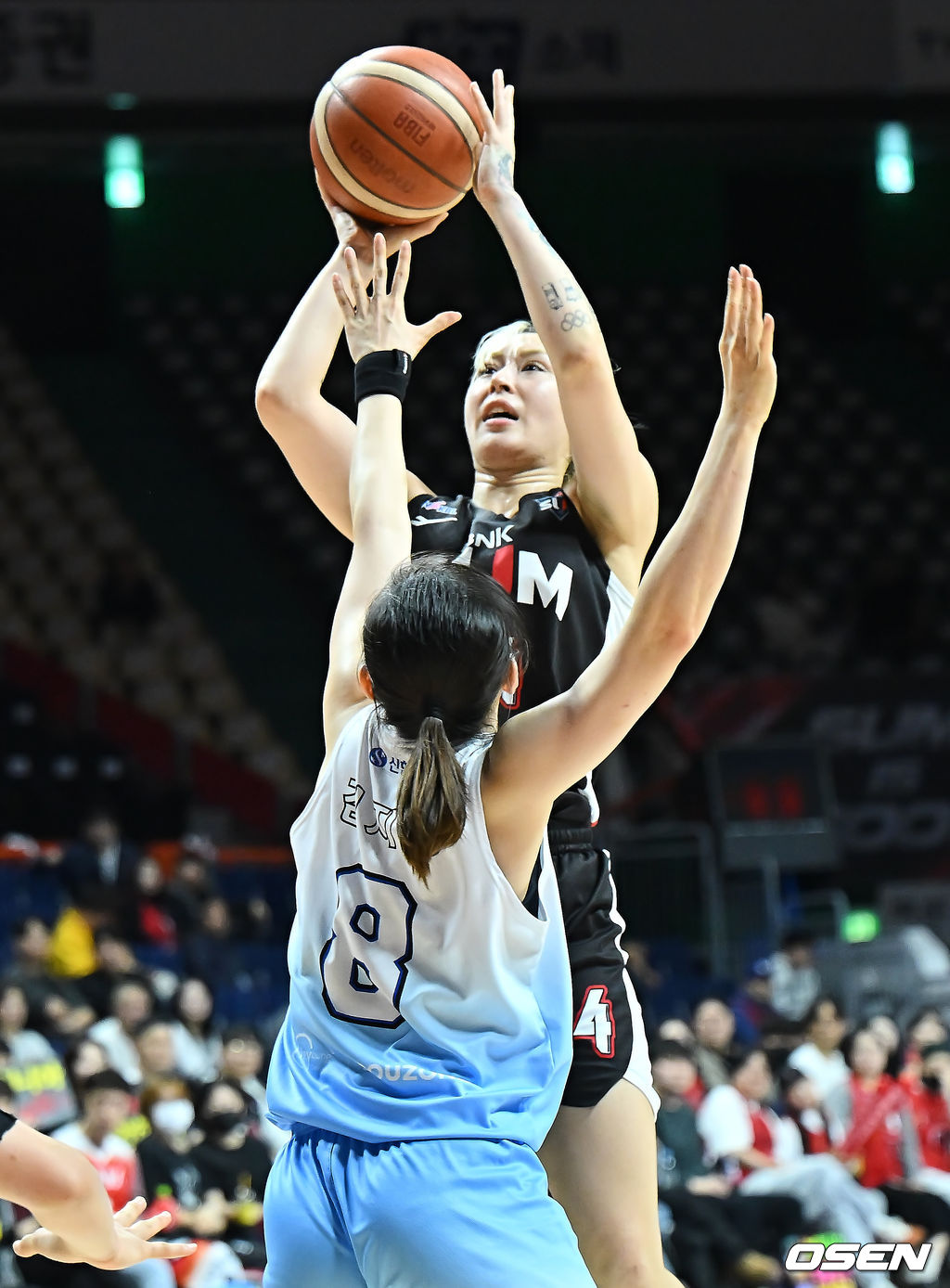 부산 BNK 김소니아가 인천 신한은행 김지영의 마크를 피해 골밑슛을 시도하고 있다. 2026.02.22 / foto0307@osen.co.kr
