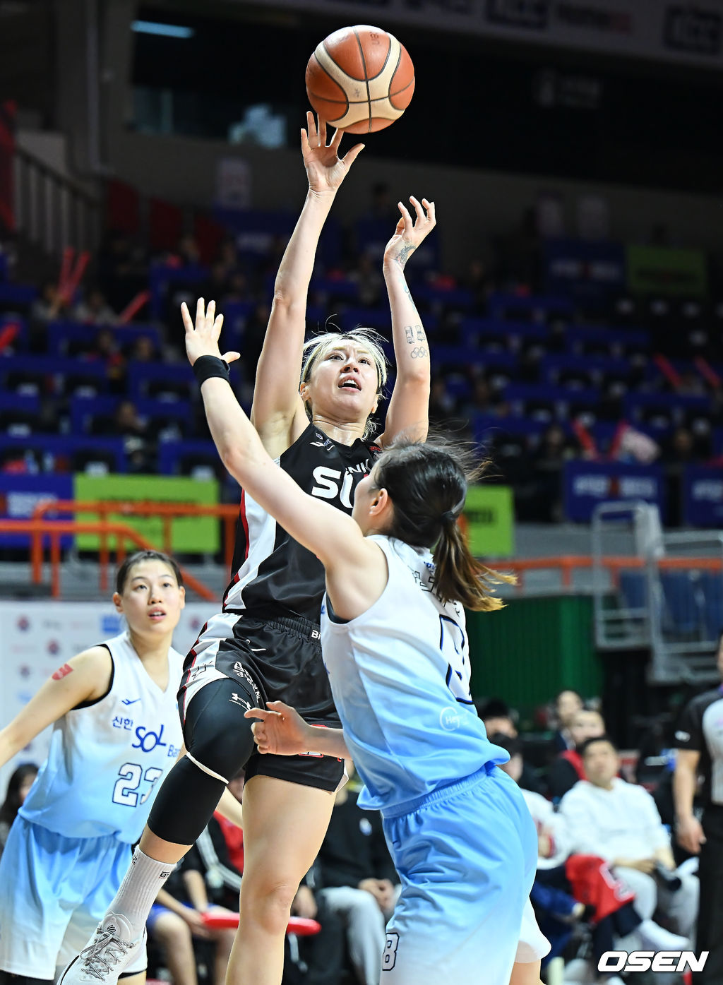 부산 BNK 김소니아가 인천 신한은행 김지영의 마크를 피해 골밑슛을 시도하고 있다. 2026.02.22 / foto0307@osen.co.kr