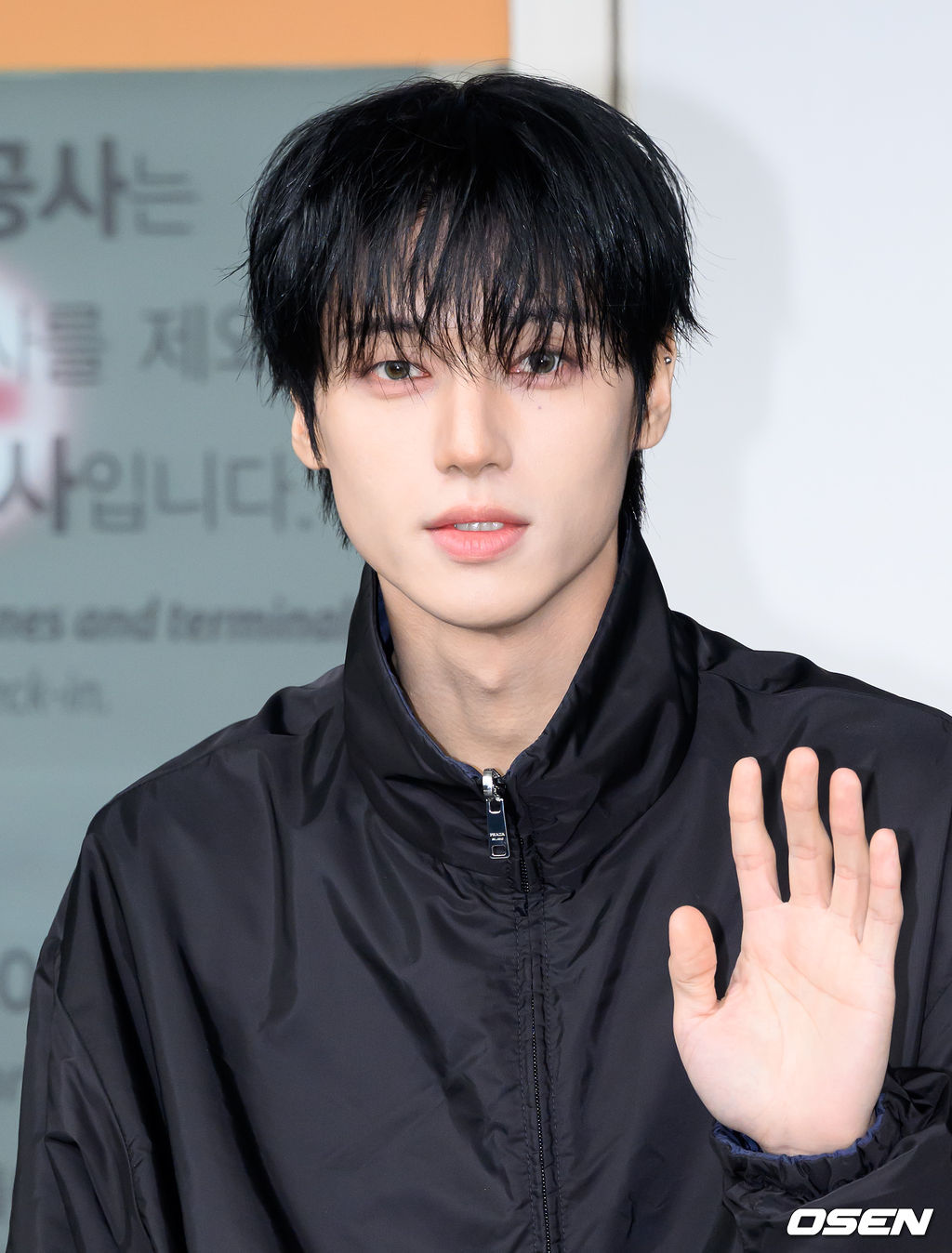 우영이 출국장으로 항하며 팬과 취재진을 향해 인사를 하고 있다. 2026.02.24 / sunday@osen.co.kr