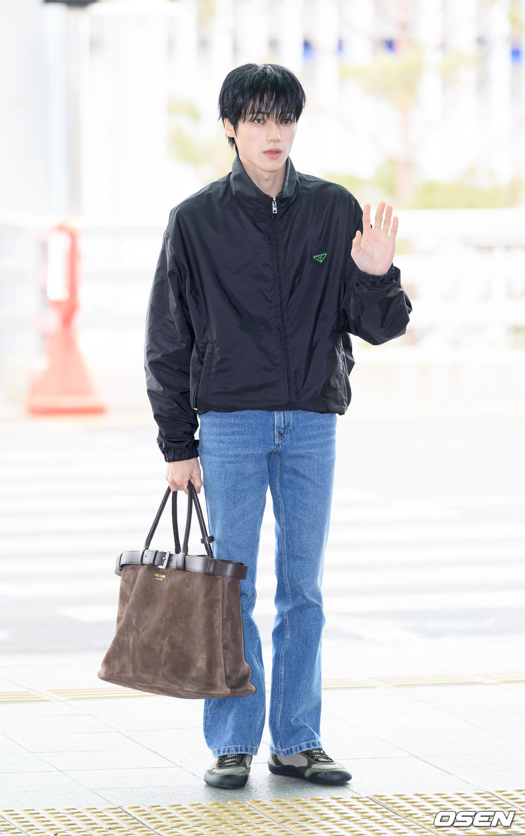우영이 출국장으로 항하며 팬과 취재진을 향해 인사를 하고 있다. 2026.02.24 / sunday@osen.co.kr