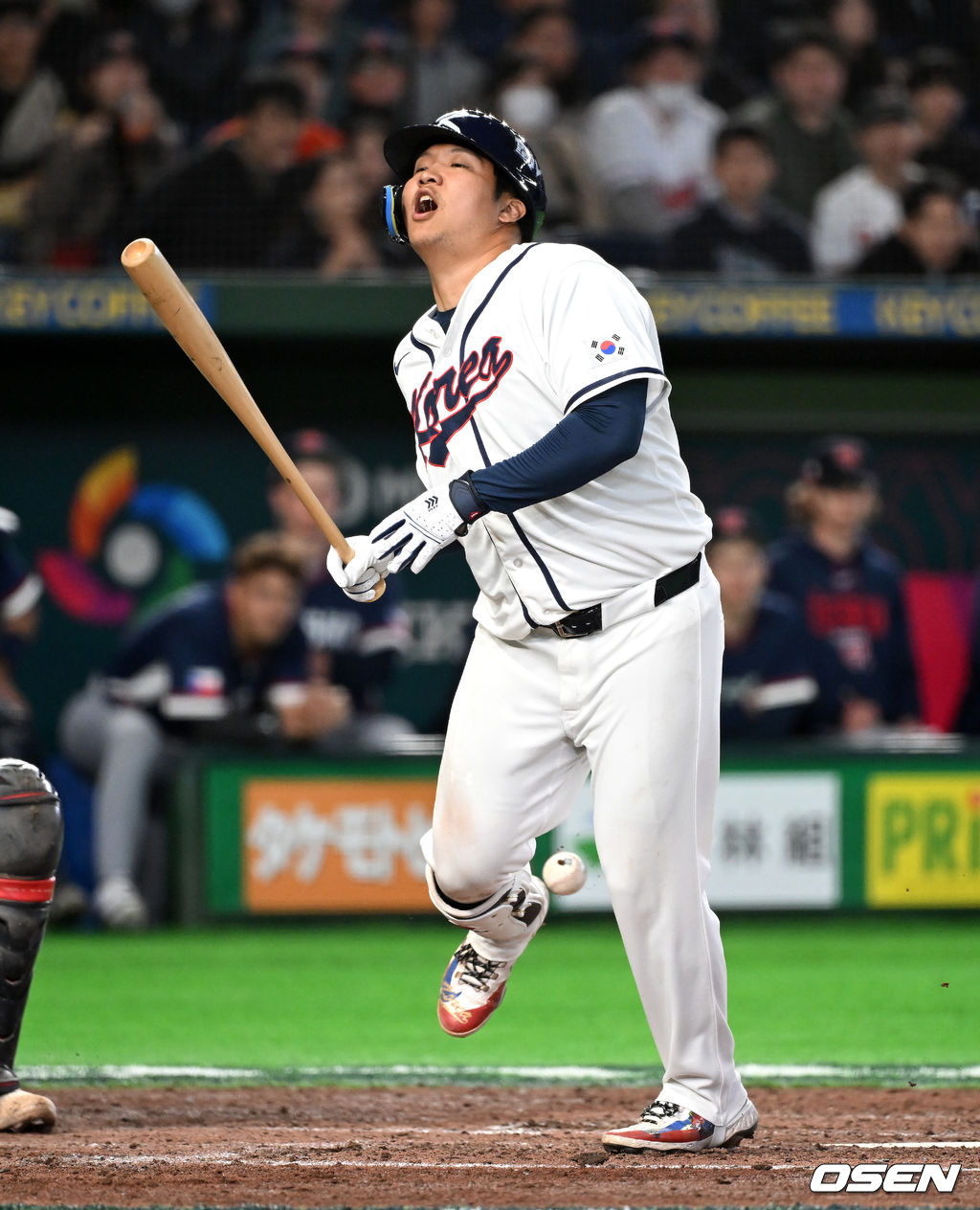 5회말 1사에서 한국 문보경이 체코 미할 코발라의 투구를 맞고 있다. 2026.03.05 /spjj@osen.co.kr