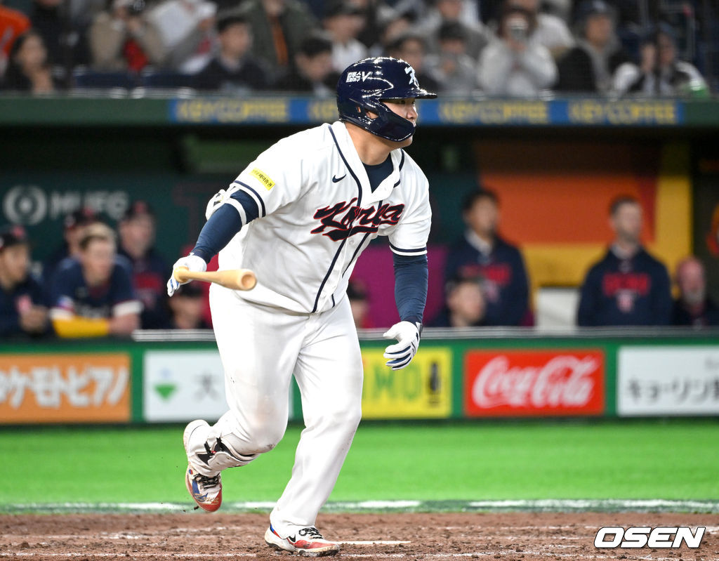 7회말 무사 2루에서 한국 문보경이 적시타를 치고 있다. 2026.03.05 /spjj@osen.co.kr