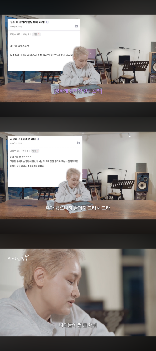 이어 “세상과 소통하려고 하네 진짜 기특하다. 콘서트로 잠깐 세상 밖에 나오던 느낌이었는데 이제는 직접 소통하려고 한다”는 팬의 댓글을 읽은 뒤에는 솔직한 속내도 전했다.