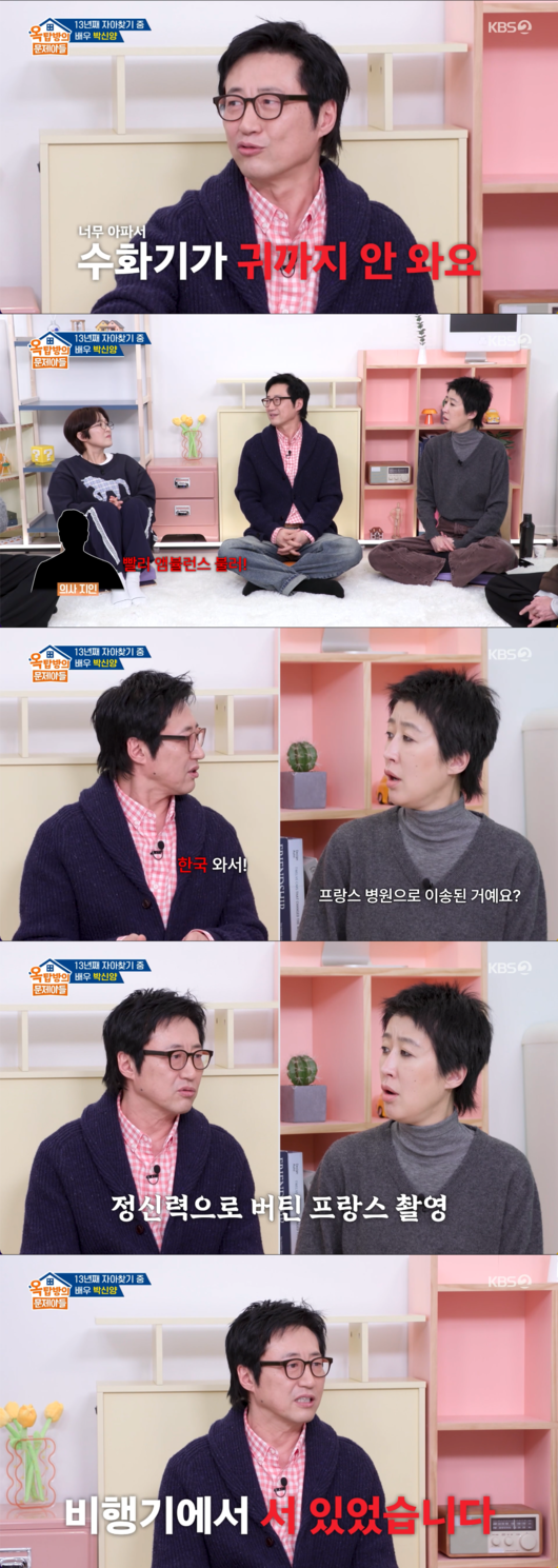 박신양은 프랑스 현지에서 부상을 당했음에도 책임감 하나로 버티며 한국행 비행기에 올랐던 긴박한 순간을 설명했다. 특히 한국으로 돌아오는 기내 안에서도 “비행을 할 때도 앉지 못하고 서 있었다”고 말해 당시 상태가 얼마나 심각했는지를 짐작게 했다.