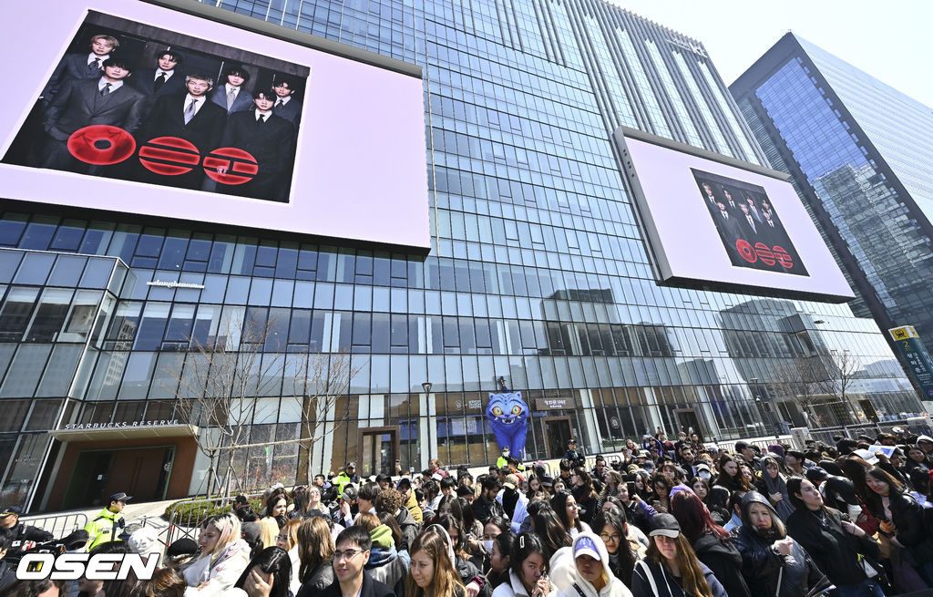 방탄소년단은 전날 3년 9개월 만의 새 앨범인 정규 5집 ‘아리랑’을 발표했다. 타이틀곡 ‘스윔’은 멜론 ‘톱 100’ 차트 1위에 올랐고, 실물 음반도 발매 당일 약 400만장이 팔렸다. 2026.03.21 / soul1014@osen.co.kr