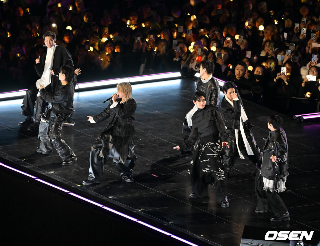 BTS의 RM, 진, 슈가, 제이홉, 지민, 뷔, 정국이 공연을 펼치고 있다. 2026.03.21 / rumi@osen.co.kr