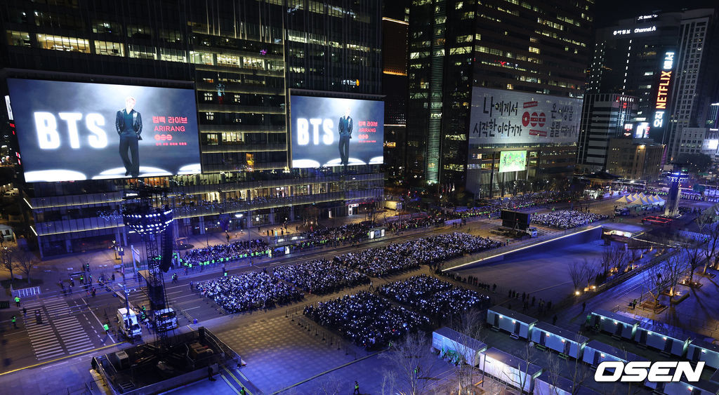 21일 오후 서울시 종로구 광화문 광장에서 'BTS 컴백 라이브: 아리랑'(BTS THE COMEBACK LIVE | ARIRANG) 공연이 열렸다.