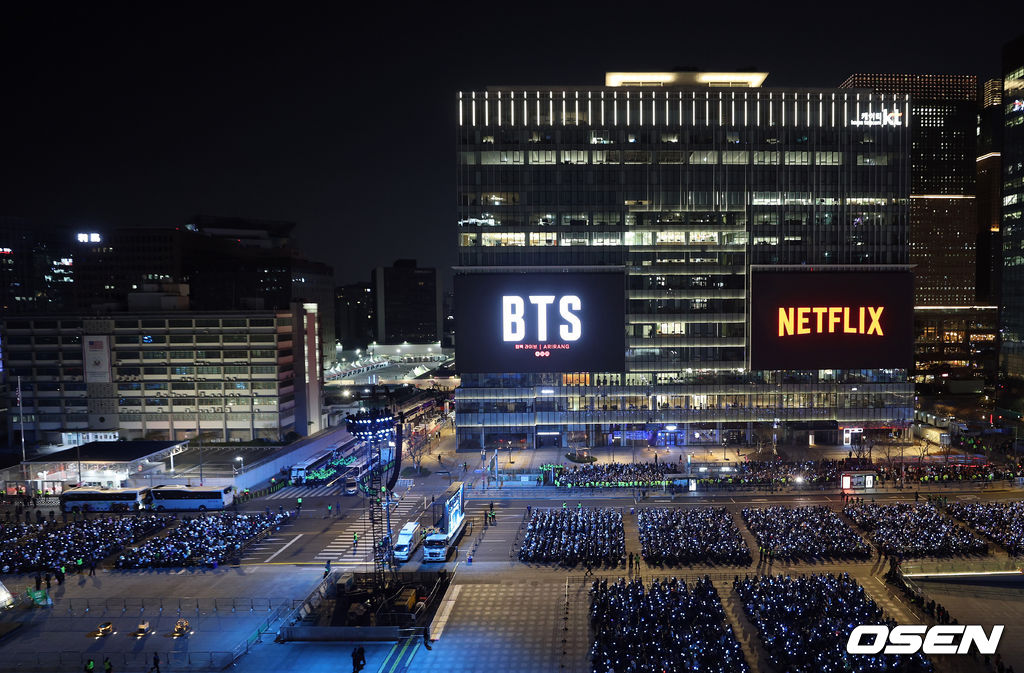 21일 오후 서울시 종로구 광화문 광장에서 'BTS 컴백 라이브: 아리랑'(BTS THE COMEBACK LIVE | ARIRANG) 공연이 열렸다.