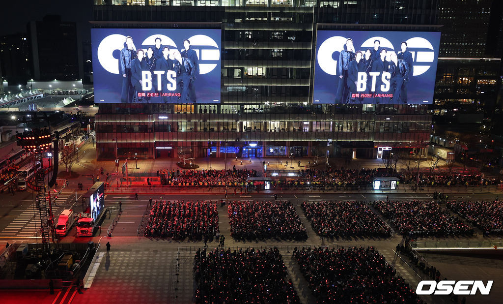 이번 공연은 BTS 멤버들이 약 3년 9개월 만에 선보이는 완전체 무대라는 점에서 전 세계 팬들의 이목을 집중시켰다. 특히 대한민국을 상징하는 공간인 광화문 광장에서 가수의 단독 공연이 열린 것은 이번이 처음으로 BTS의 글로벌 위상과 상징성을 다시 한번 입증했다.
