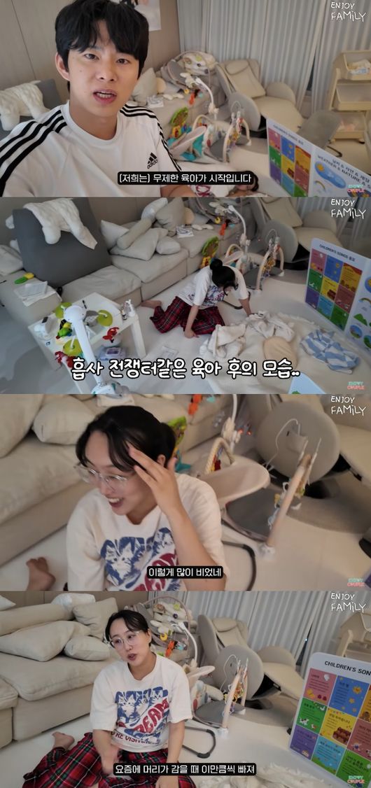 이후 어김없이 육아 전쟁을 치르던 중 손민수는 “(저희는) 무제한 육아가 시작입니다. 육아 동지들 힘냅시다”라며 지친 모습을 공개했다.