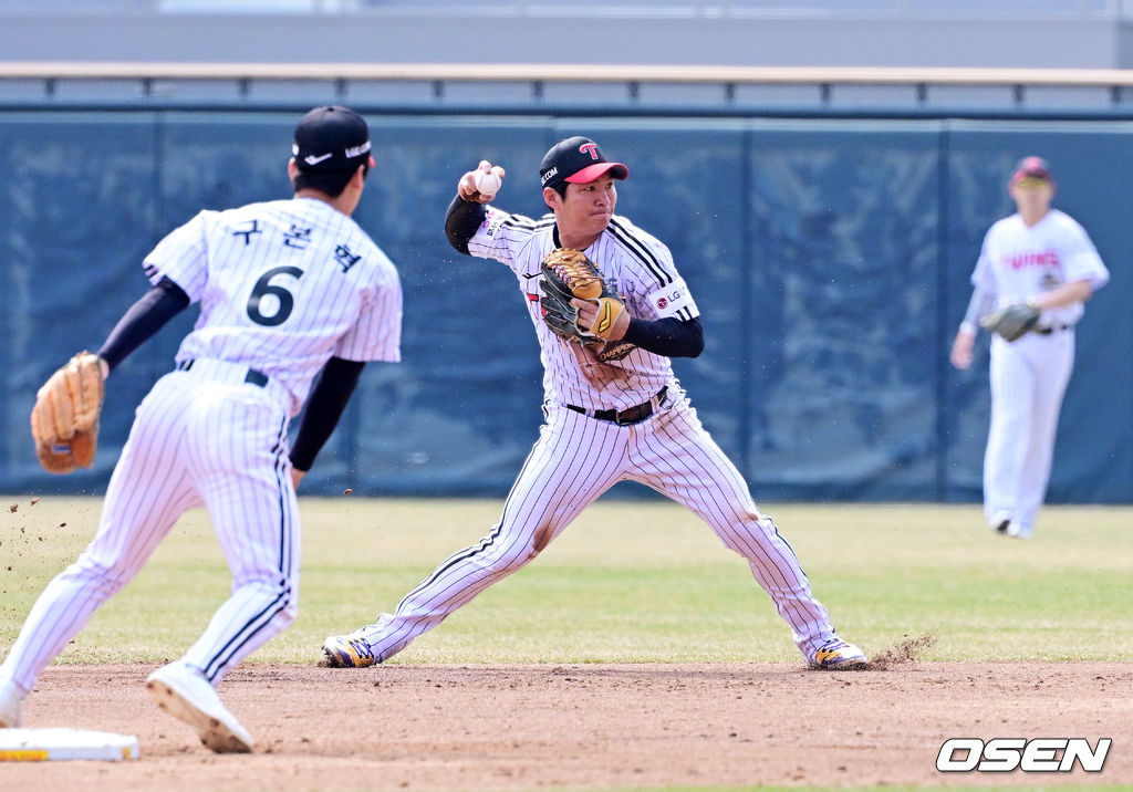 3회초 1사 1루에서 LG 오지환이 키움 최주환의 유격수 땅볼 타구에 호수비를 선보이고 있다. 2026.03.24 / jpnews@osen.co.kr