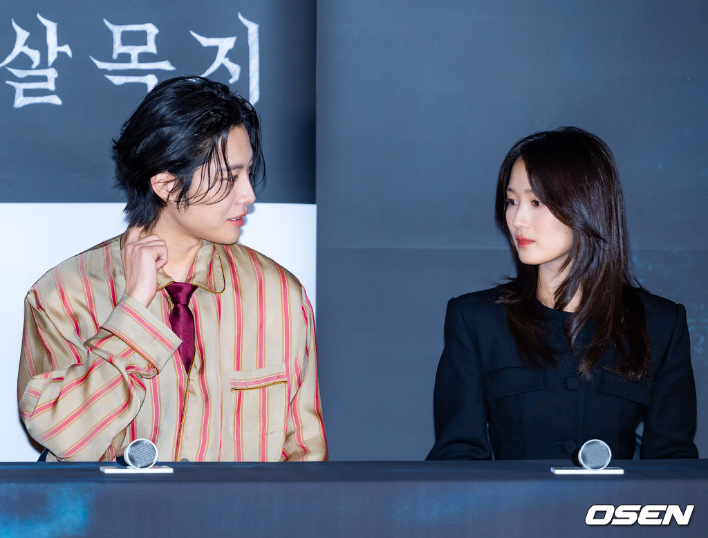 배우 이종원과 김혜윤이 기자간담회에서 얘기를 나누고 있다. 2026.03.24 / rumi@osen.co.kr