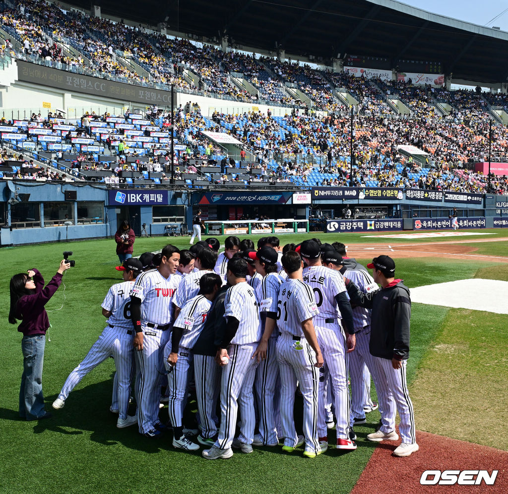 LG 선수들이 경기에 앞서 파이팅을 하고 있다. 2026.03.28 / jpnews@osen.co.kr