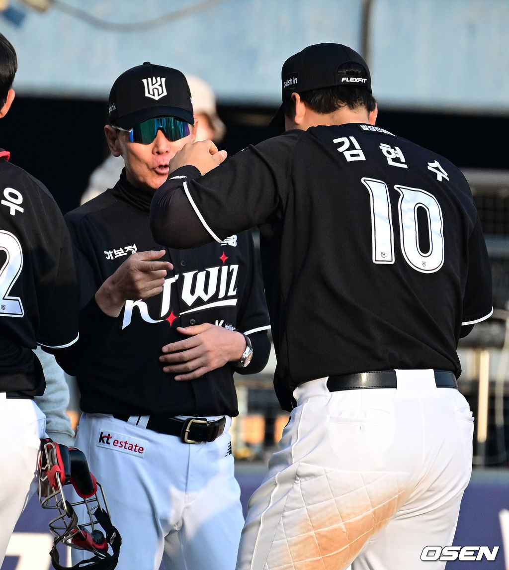 KT 이강철 감독와 김현수가 승리를 기뻐하고 있다. 2026.03.28 / jpnews@osen.co.kr