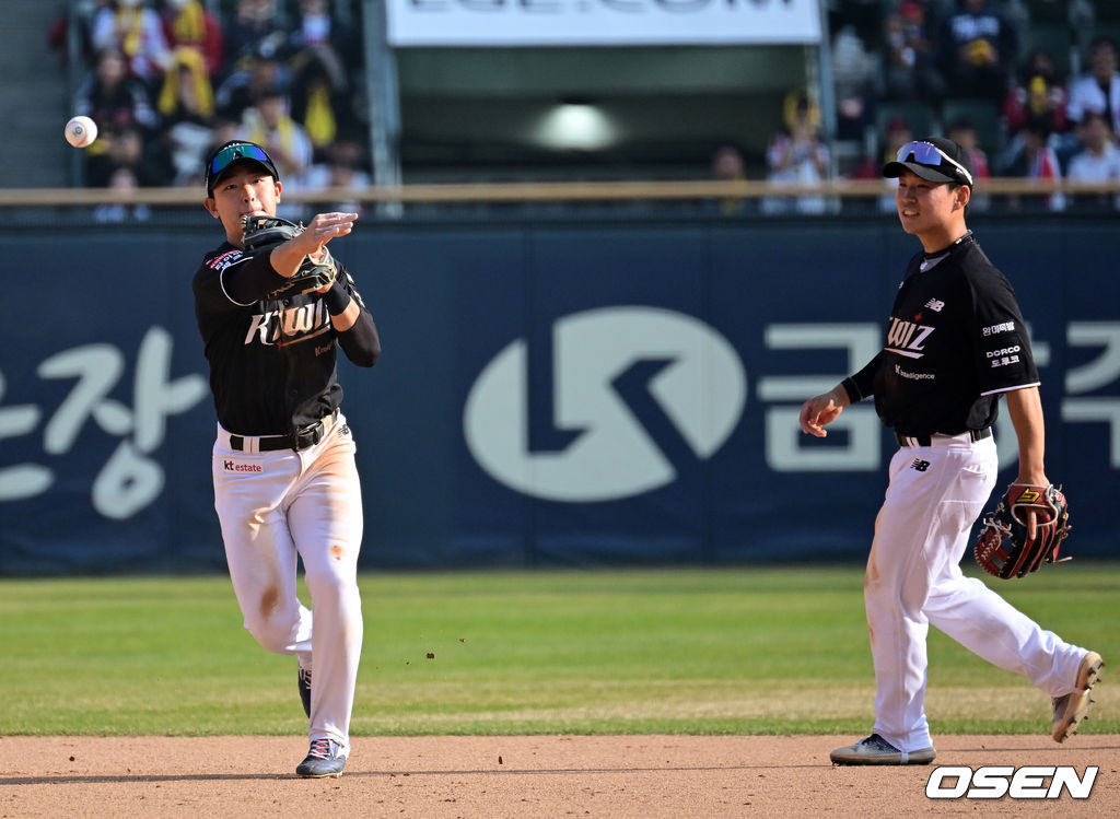 7회말 1사에서 KT 이강민이 LG 신민재의 유격수 땅볼 타구를 처리하고 있다. 2026.03.28 / jpnews@osen.co.kr