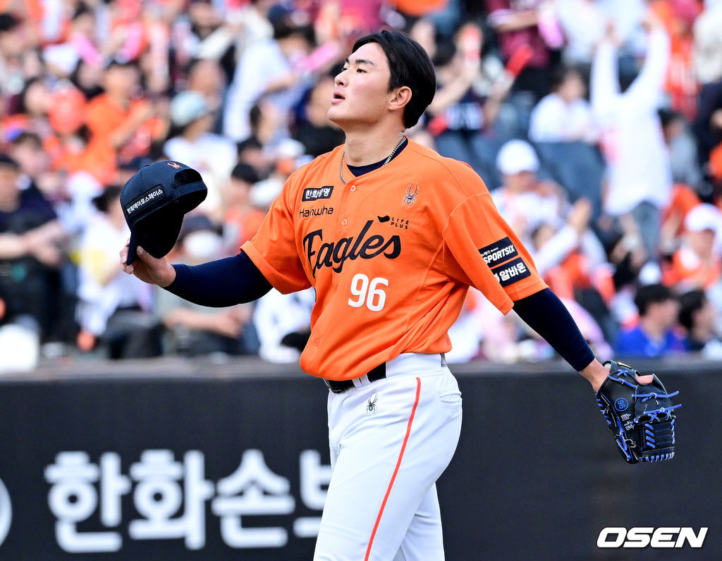 9회초 키움 공격을 삼자범퇴로 막아내며 경기를 마무리지은 한화 박준영이 모자를 벗고 있다. 2025.03.29 / dreamer@osen.co.kr